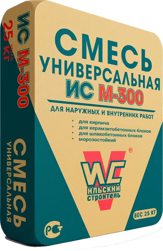 Высокопрочный кладочный раствор ИС М-300 — профессиональная ЦПС для зон повышенной нагрузки: цоколи, простенки, колонны, наружные стены. Пластичный, удобный в работе, формирует плотный, долговечный шов. Для внутренних и наружных работ. Фасовка — 25 кг.