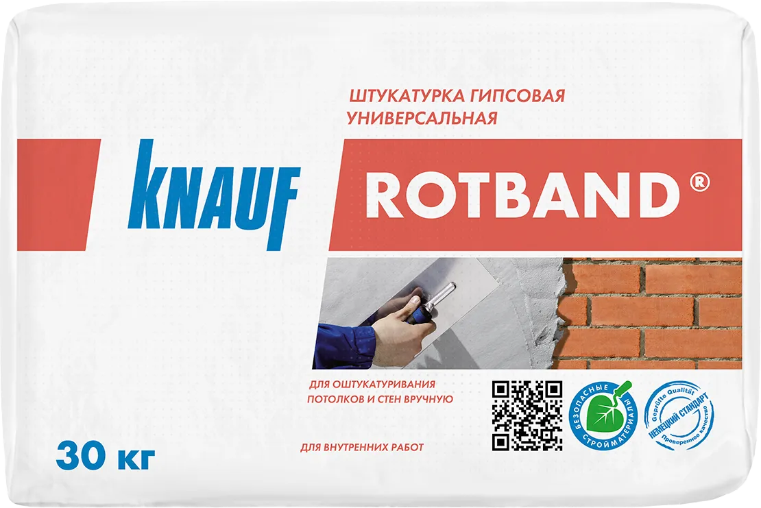 Knauf Ротбанд — это универсальная гипсовая штукатурка премиум-класса для ручного выравнивания стен и потолков внутри помещений. Благодаря проверенному немецкому качеству, материал отличается отличной пластичностью, высокой адгезией и удобством в работе. Подходит для большинства минеральных оснований и формирует идеально ровную, гладкую поверхность под финишную отделку без необходимости шпаклевания.