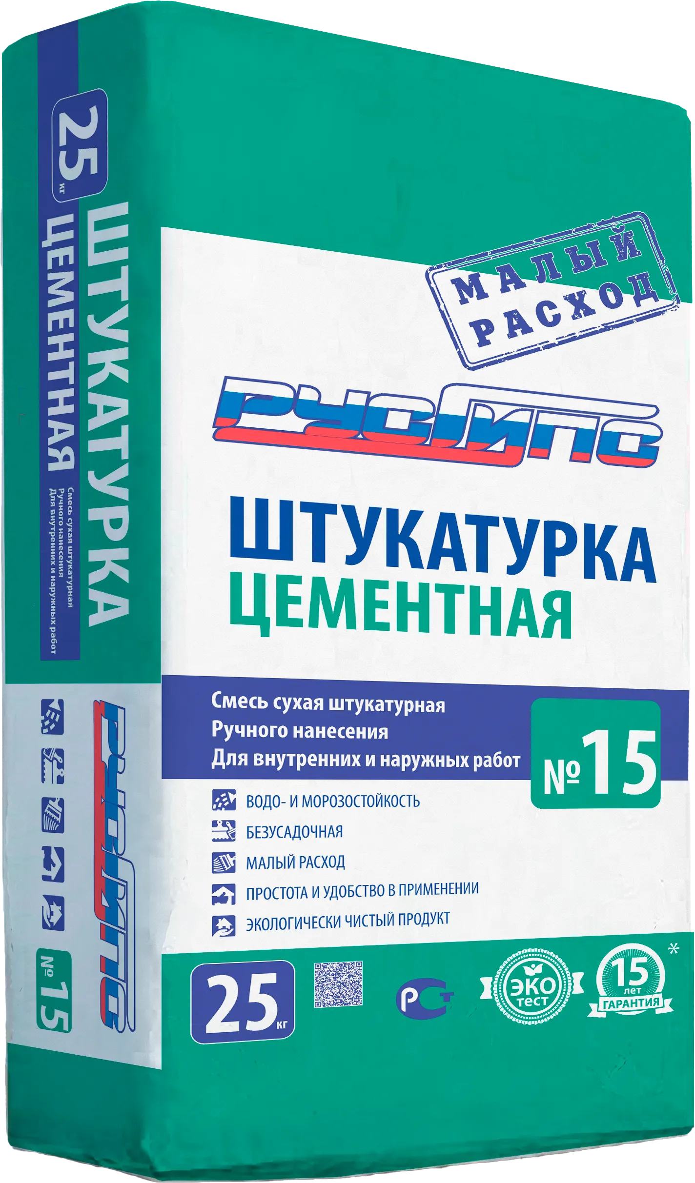 Цементная штукатурка Русгипс №15 предназначена для наружных и внутренних работ. Обеспечивает прочное, атмосферостойкое и паропроницаемое покрытие, подходит для фасадов, цоколей и влажных помещений, создавая надёжную основу под последующую отделку.